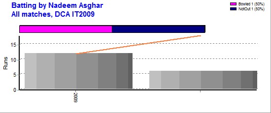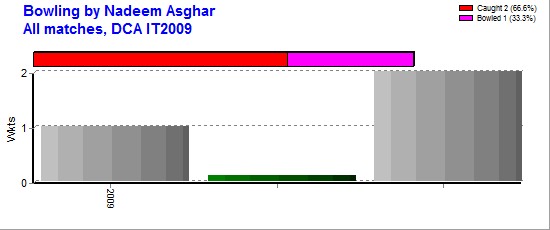 | DCA IT2009 | 3 | 2 | 1 | 18 | 12* | 18.00 | - | - | 11 | - | 75 | 3 | 25.00 | 2-27 | - | - | - | - | 2 |