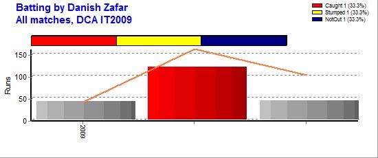 | DCA IT2009 | 3 | 3 | 1 | 207 | 120* | 103.50 | 1 | - | 12 | 1 | 69 | 7 | 9.86 | 6-17 | - | 1 | 3 | - | - |