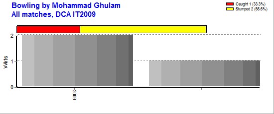 | DCA IT2009 | 2 | 1 | - | 6 | 6 | 6.00 | - | - | 8 | - | 52 | 3 | 17.33 | 2-18 | - | - | - | - | - |