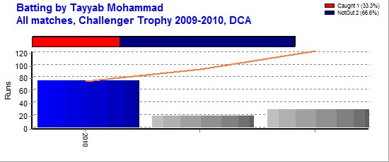 | 3 | 2 | 123 | 75* Vs DCA 2009/10 | 123.00 | 76.42% | 1 | - | 93 | 132.26 | 5 | 5 | - | - | |