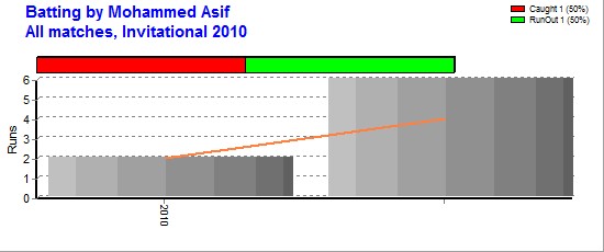 | Invitational 2010 | 3 | 2 | - | 8 | 6 | 4.00 | - | - | 11 | - | 125 | 6 | 20.83 | 3-23 | - | - | 1 | - | - |