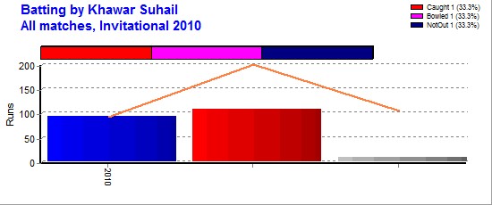 | Invitational 2010 | 3 | 3 | 1 | 211 | 107* | 105.50 | 1 | 1 | 11 | - | 105 | 2 | 52.50 | 2-31 | - | - | 1 | - | - |