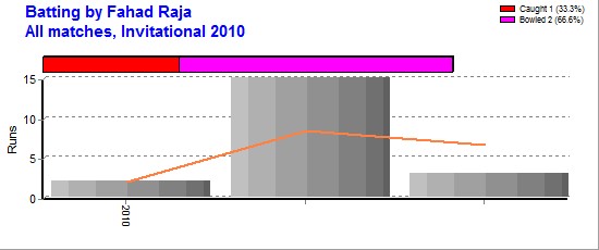 | Out Most By - Satti Saad(1) Rajmohd Khan(1) Khurram Aftab(1) | ||||||||||||||