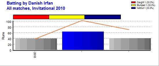 | Invitational 2010 | 3 | 3 | 1 | 145 | 64* | 72.50 | - | 1 | 9 | - | 92 | 3 | 30.67 | 2-26 | - | - | 2 | - | - |
