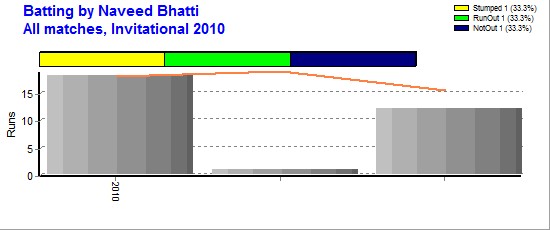 | Invitational 2010 | 3 | 3 | 1 | 31 | 18* | 15.50 | - | - | 9 | - | 76 | 1 | 76.00 | 1-38 | - | - | - | - | - |