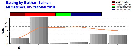 | Out Most By - Rafaqat Saleem(1) Sadiq Ahmad(1) Siaqat Khan(1) |