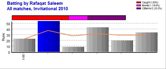 | Out Most By - Sibghatullah Atif(1) Bukhari Salman(1) Khan Imran(1) Aqeel(1) Irfan Farooqui(1) Arshad Bazaz(1) |