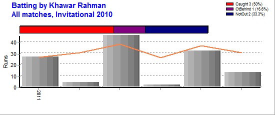 | Out Most - Sarwar Beigh(1) Jahangir Nasheed(1) Iftikhar Ali(1) Sohail Butt(1) Khurram Aftab(1) Ahsan Mehboob(1) Behzad Rashid(1) Mohd Iqbal(1) |