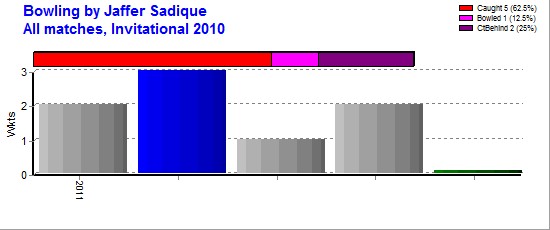 | Out Most - Iqbal Talal(1) Imran Karamat(1) Osman Malik(1) Irfan Farooqui(1) Zahid Naqvi(1) Abbas Hussain(1) Muthalif Kasim(1) Sajeew S.(1) |