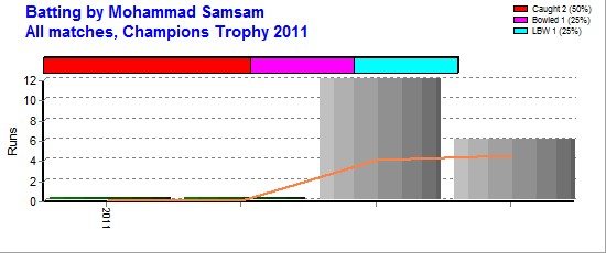 | Out Most By - Mushtaq Sheraz(1) Tayyab Mohammad(1) Mashadi Muneeb(1) Naveed Haider(1) |