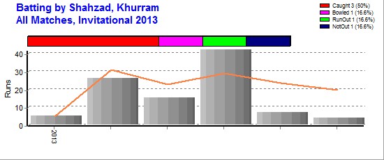 | Out Most By - Aziz, Shoaib(1) Shah, Mohsin Ali(1) Abbas, Zaheer(1) Khan, Nasir(1) |