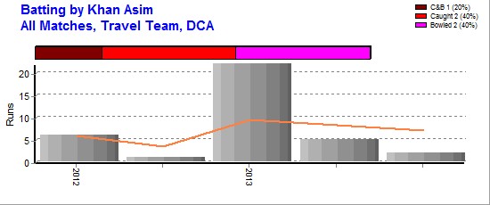 | Out Most By - Bukhari Salman(1) Imran Farooqui(1) Bajjal, Naushad(1) SP,Q(1) Butt, Faraz(1) |