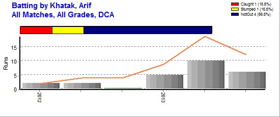 2012/13 10 6 4 25 10* 12.50 83.33 - - 15.4 - 135 5 27.00 2-23 - - 1 - -