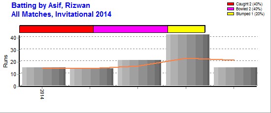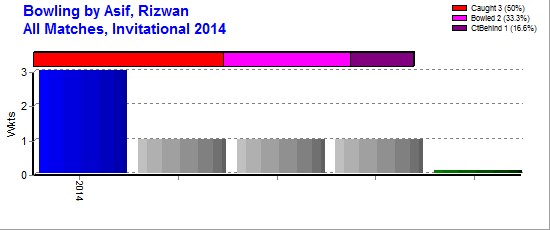 | Out Most - Khurshid, Rafiq(1) Siddique, Asif(1) Hashmi, Tanveer(1) Khan, Rehan(1) Abu Baker, Mohammad(1) Patwardhan, Rohit(1) |