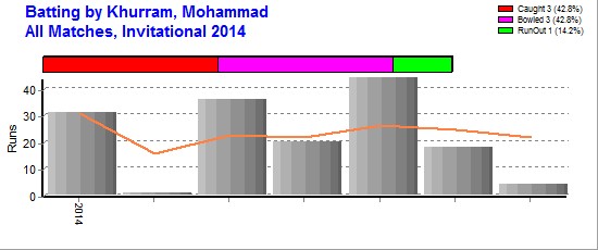 | Out Most By - Farooqui, Haroon(1) Iqbal, Mohammad(1) Rauf, Aqeel(1) Mehboob, Ihsan(1) Bhat, Sajad Ahmed(1) Muqeem, Qeiser(1) |