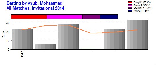 | Out Most By - Ali Jaan, Nawab(1) Mela, Aun(1) Gul, Anwar(1) Munir, Hafiz Yasir(1) Shah, Farooq(1) |
