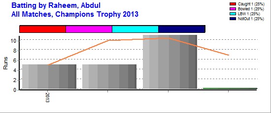 | Out Most - Din, Tariq(1) Ahmed, Qadeer(1) Umer Imtiaz(1) |