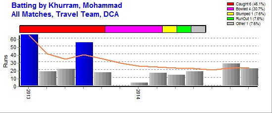 Dhahran Cricket Ground 16 13 1 278 65 23.17 124.11 - 2 20.5 - 193 13 14.85 4-25 - - 2 - -