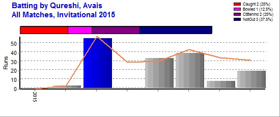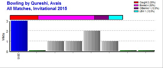 | Out Most By - Waheed, Zahid(1) Majid, Fahad(1) Haider, Zayyan(1) Shoaib, Mohammad(1) Imran Sadki(1) |