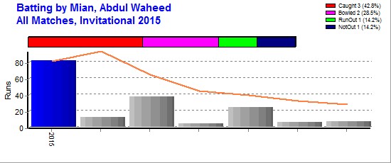 | Out Most By - Sikandar, Saad(1) Tayyab, Mohammad(1) Nadeem, Shahid(1) Ishaque, Ghazanfar(1) Shoaib, Mohammad(1) |