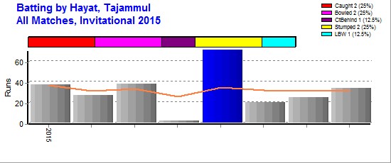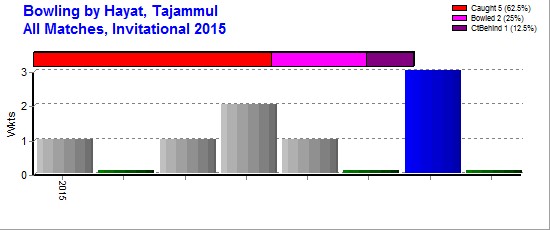 | Out Most By - Qureshi, Avais(1) Abbasi, Qadir(1) Arif, Imran(1) Khan, Bilal(1) Yaseen, Mohammed(1) Ishaque, Ghazanfar(1) Amman Hussain(1) Sohail, Amir(1) |
