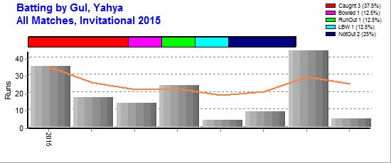 | Out Most By - Bukhari, Zuhair(1) Abbasi, Qadir(1) Moti, Rahman(1) Ifthikhar Ali(1) Asif Hussain(1) |