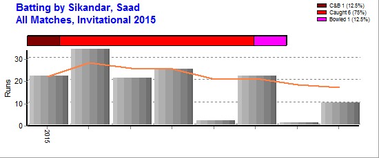 | Out Most By - Ahmad, Asif(1) Khan, Asif Mohd(1) Hayat, Tajammul(1) Ahmed, Afaq(1) Shaikh, Owais(1) Haider, Zayyan(1) Muhammad, Saif(1) Ifthikhar Ali(1) |