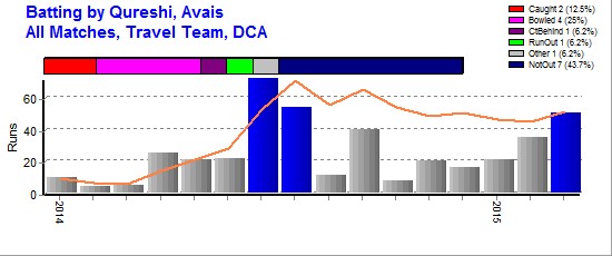 | Out Most By - Praveen Viswanathan(1) Sharjeel Anjum(1) Muqeem, Qeiser(1) Mohammad(1) Qadir, Rehan(1) Tanveer, Naveed(1) Atif, Sadoun(1) |