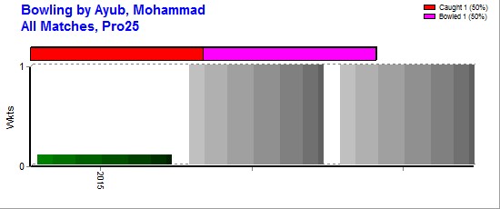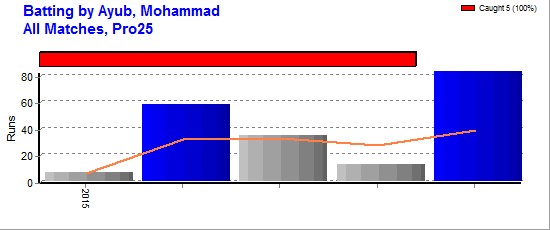 | Out Most By - Khan, Rehan(1) Imtiaz, Umar(1) Anjum, Sharjeel(1) Zaheer Khan(1) Waqas Sabir(1) |