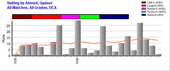 Dhahran Cricket Ground 30 24 6 233 29 12.94 103.56 - - 12.1 1 88 4 22.00 1-2 - - 5 - 2
