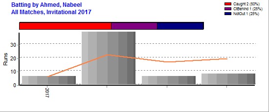 | Out Most - Ahmed, Qadeer(1) Ahmad, Asif(1) Yasir Ikram(1) Saddam Hussain(1) |