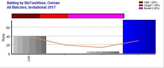 | Out Most By - Sibghatullah, Atif(1) Farooqui, Sheraz(1) Bashir, Faisal(1) Junaid Khan(1) |