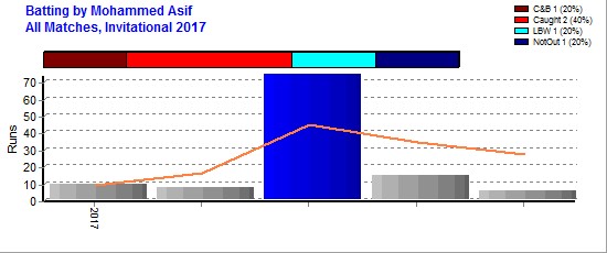 Dhahran Cricket Ground 5 5 1 109 74 27.25 145.33 - 1 18 - 151 3 50.33 1-30 - - 1 - -