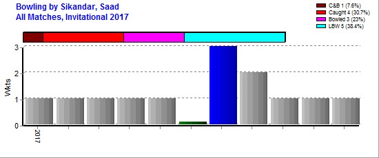 | Out Most By - Shahid, Talha(1) Ghias Uddin(1) Mohammad Shoaib(1) Saqib Azad(1) Mohammed Saif(1) ... |