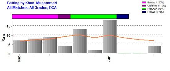 | Out Most - Tayyab, Mohammad(1) Siddiqui, Saood(1) Tunio, Zia(1) Zubair, Ahsan(1) Wasi, Abdullah(1) ... |