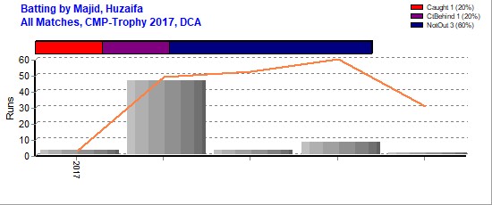 | Out Most By - Mushtaq, Sheraz(1) Javed, Tamour(1) |